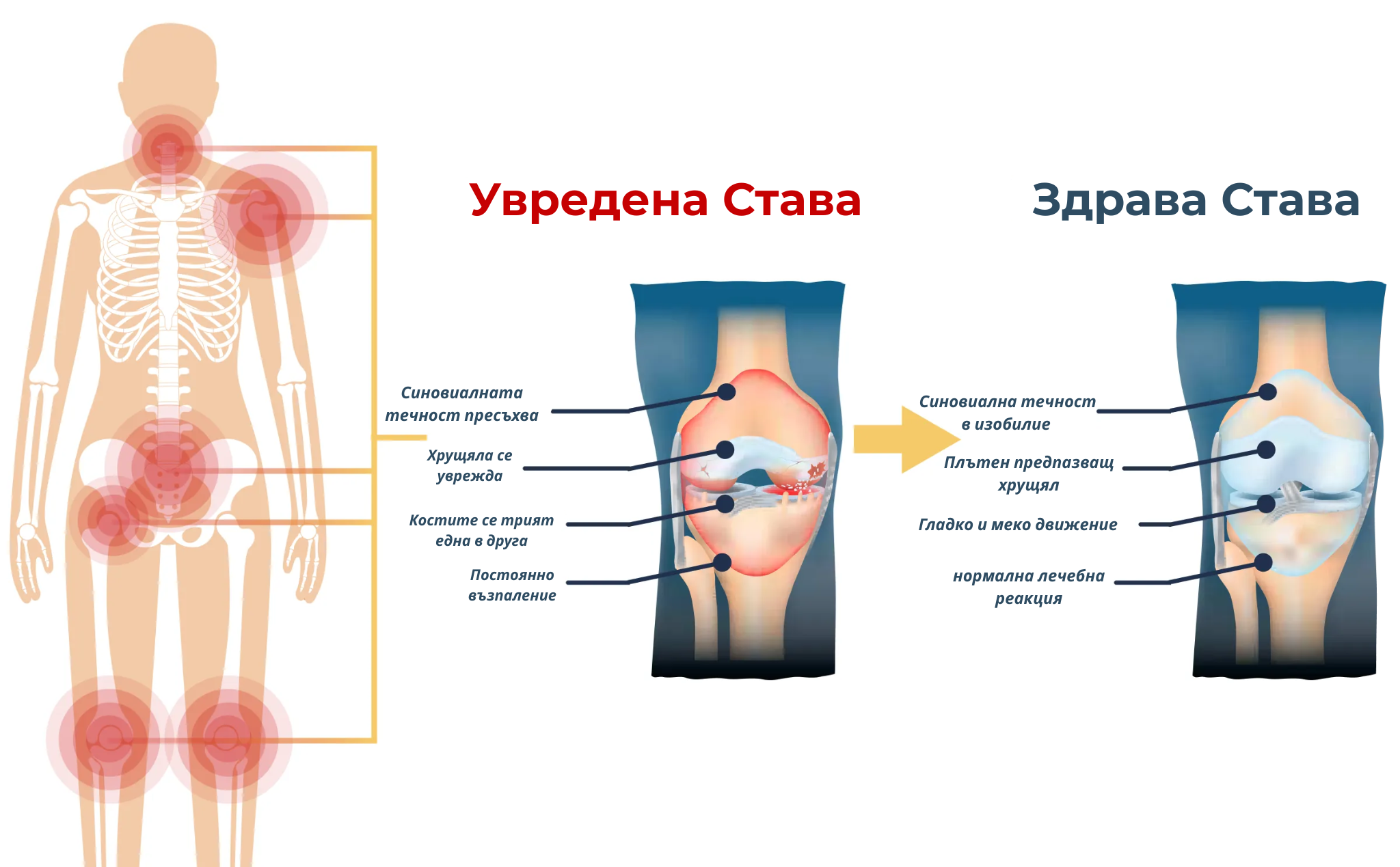 Synovo спира цитокиновата криза, възстановява хрущяла и възстановява синовиалната течност - като едновременно се справя с трите основни причини за разграждането на ставите.